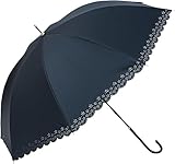剣先長めの長柄スタイルは、閉じて持ち歩く姿も美しく、裾のフリルと花柄は特殊なヒートカット製法で仕上げられ、細部まで女性らしさを演出。