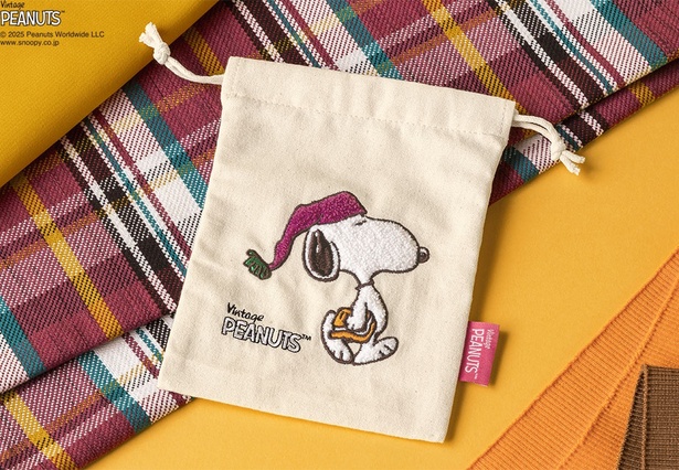 は、サガラ刺しゅうのスヌーピーがアクセント。バッグの中の小物整理に便利なサイズ感もうれしい。