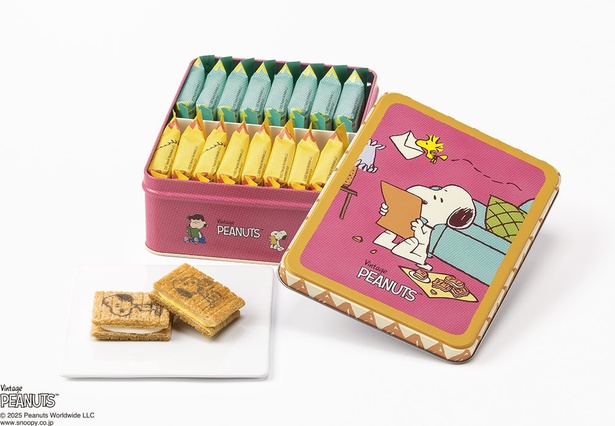 誰かから手紙が届いたスヌーピーとウッドストックがじっくり手紙を読んでいる様子が描かれたスペシャル缶入り。側面までスヌーピーと仲間たちがデザインされていて、隅々までじっくり見たくなる。お菓子を食べ終わった後も、飾ったり小物入れとして活用したい。