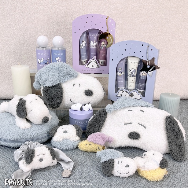 や仲間たちのグッズがそろう「PEANUTS(ピーナッツ)」のオフィシャルショップ「スヌーピータウンショップ」では、睡眠中のスヌーピーをデザインした「リラックスナイト」シリーズのグッズを展開中だ。