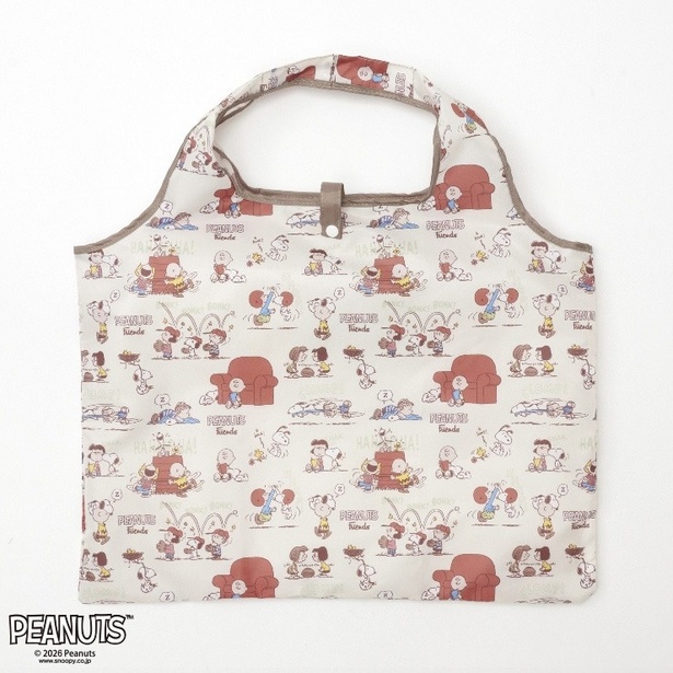 は、ショルダーとしても手提げとしても使える2WAY仕様。キルト素材にジョー・クールの刺しゅうをあしらったデザインで、持ち手にはスヌーピー柄が織り込まれている。グレーとブラックの2色展開で、通勤にもおでかけにも使い回せる万能バッグだ。