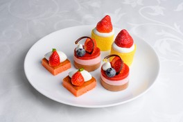 ムースフレーズ(いちごのムース)、いちごとピスタチオのタルト、いちごとチョコレートのショートケーキ