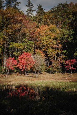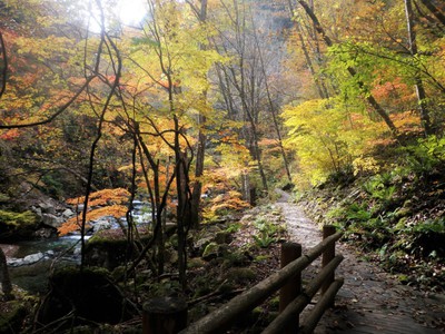 道中では、カツラ、モミジ、サワクルミなどの紅葉が目を楽しませる。例年、10月中旬頃から色づき始め、10月下旬から11月中旬頃が見頃の時期となる。