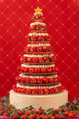 ディナータイムには巨大な「ミル・ミル・サントノーレ」がクリスマス限定のいちごバージョンで登場し、ほんのり甘酸っぱいいちごクリームのプチシューが楽しめる。
