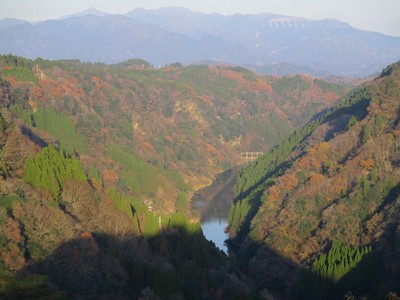 約200メートルの高さに切り立つ絶壁が約10キロメートルにもわたって続く、日本では珍しいU字形の緑深い渓谷。長崎鼻展望台からは谷底をぬうように流れる五ヶ瀬川が望め、秋の紅葉の時期には、九州のグランドキャニオンと呼ばれる渓谷の四季折々の絶景と紅葉を楽しめる。例年、11月中旬頃が紅葉の見頃の時期となる。