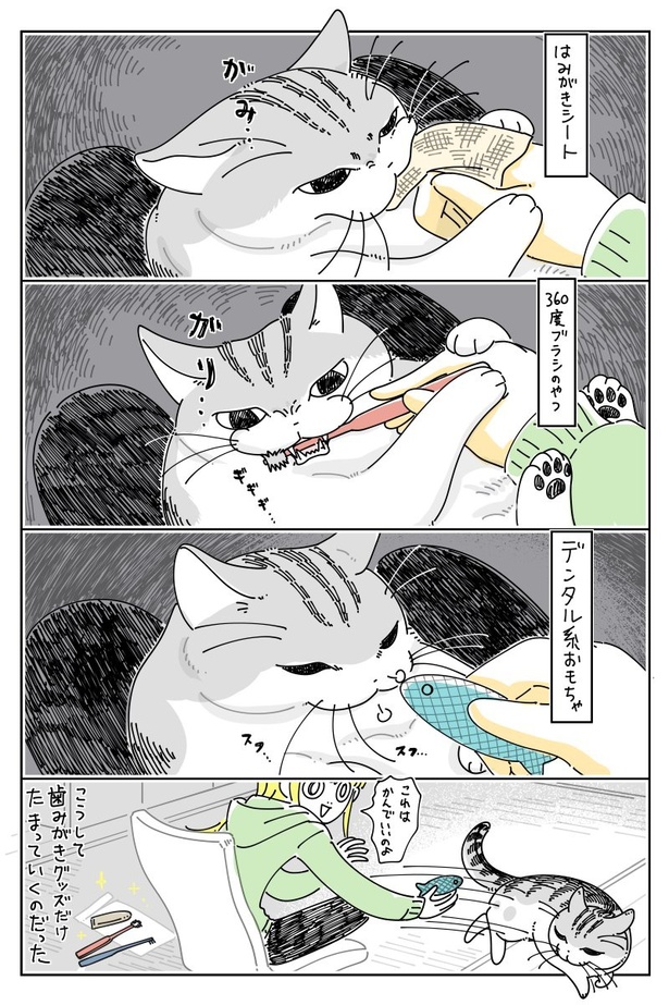 <画像143/604>飼い主が食べ始めるのを確認してから、ごはんを食べ始める猫。一緒に食べている感じがして幸せ…!/『夜は猫といっしょ』
