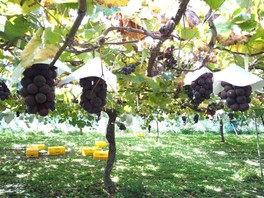 広い敷地でリンゴ狩りや巨峰狩りが楽しめる農園